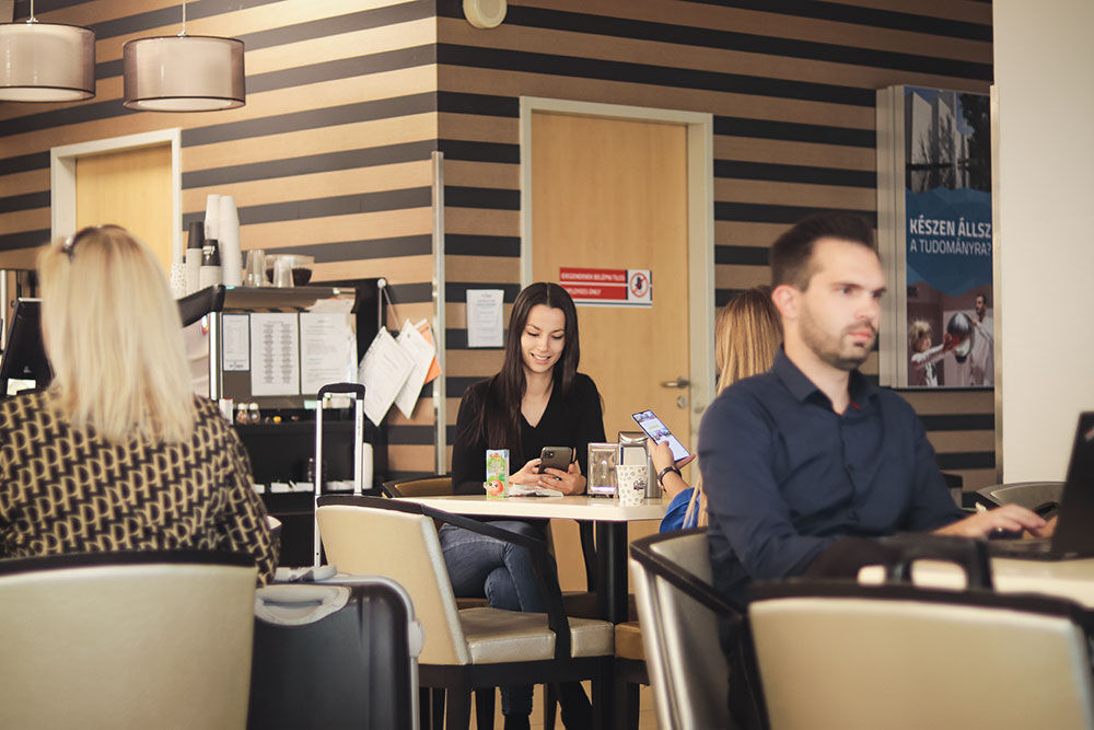 A Skybar és Bisztróban kényelmesen pihenhet, és frissülhet fel utazása előtt, hisz a hely egyedülálló atmoszférájával különleges élményt nyújt minden vendég számára. A megjelenésen túl fontos szempont a minőségi ételek, italok, valamint a boltban található termékek széles választékának biztosítása.